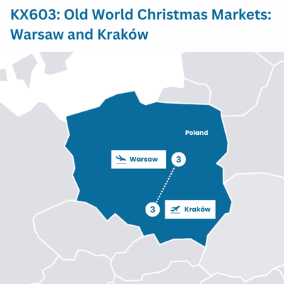The 700-year-old capital of Poland is a symbol of nationhood and resilience against great odds. A sightseeing tour includes a drive along the famous Royal Route from the grand Castle Square to Łazienki Park and Palace, the summer residence of Poland’s last king. See the Palace of Science and Culture (known as a “wedding cake”), the Saxon Gardens, the Tomb of the Unknown Soldier, the Monument to the Heroes of the Warsaw Ghetto, and the Barbican. Then, continue with a walking tour of the Old Town, Old Market Square, and St. John’s Cathedral. The rest of the day is dedicated to visiting the Christmas markets. (B)